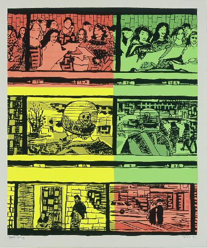 Ofra and soldiersscreenprint (fluorescent ink)90x78 cm.