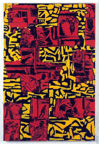red, yellow and black paintingacrylic on canvas150x100 cm.