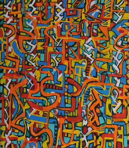 orange and blue paintingacrylic on canvas160x1440 cm.