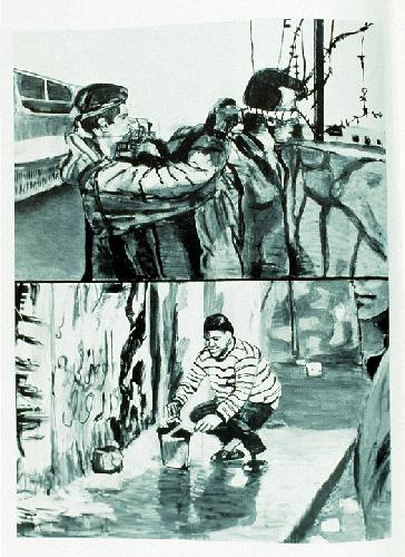 erasing writing from the wallacrylic on canvas160x140 cm.