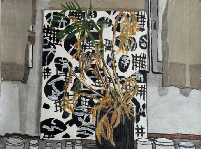 plant against black and white paintingacrylic on paper57.5x77 cm