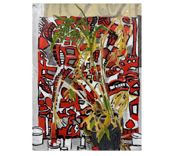 plant against red paintingacrylic on paper77x57.5 cm