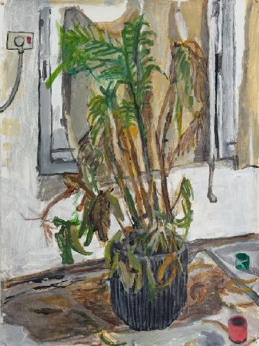 plant with paint cans acrylic on paper77x57.5 cm