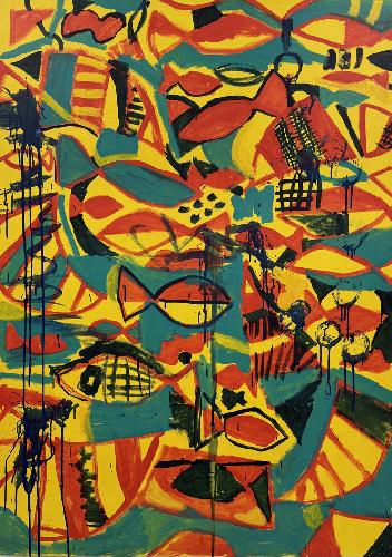coral reef 7 (1973) acrylic on cotton133x100 cm.