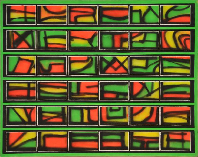 green fluorescent contactfluorescent spray on canvas135x150 cm.