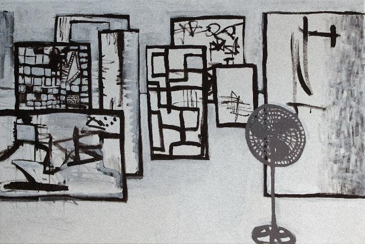 studio with electric fanacrylic on canvas100x150 cm